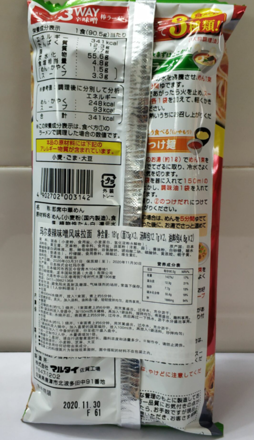 日本玛尔泰辣味噌风味2人面 181G