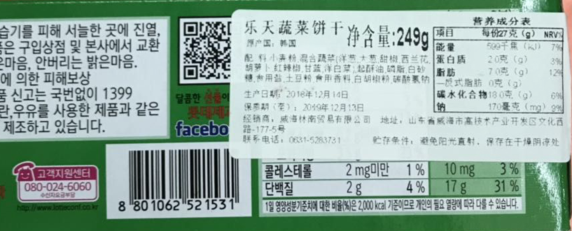 A有卫检:乐天蔬菜薄脆饼干249克