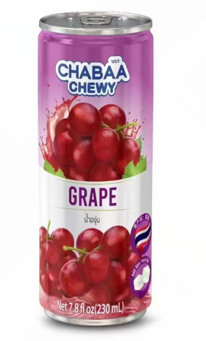有卫检:恰芭果粒嚼听装红葡萄汁饮料230ml