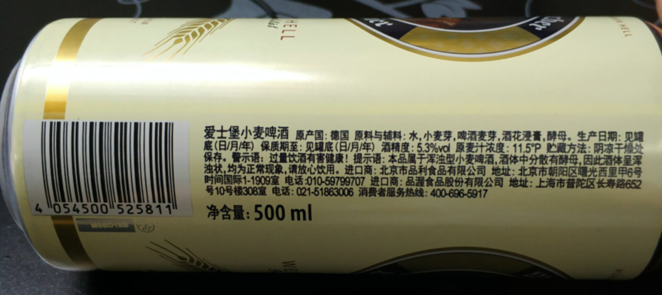 T有卫检:德国原装进口爱士堡小麦白啤酒500ml