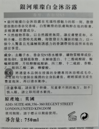 H娜芙妮银河璀璨白金沐浴露750MLl(赠送小样装如下图)