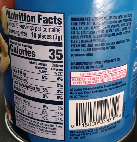 美国雀巢嘉宝幼儿手指香脆泡芙条番茄酸奶洋葱口味42g(3段)