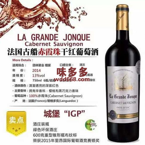 有卫检:F-法国古船赤霞珠干红葡萄酒750ml(13%VOL)