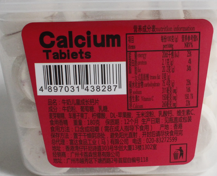 富夫牛奶儿童成长钙片180g(车厘子味)