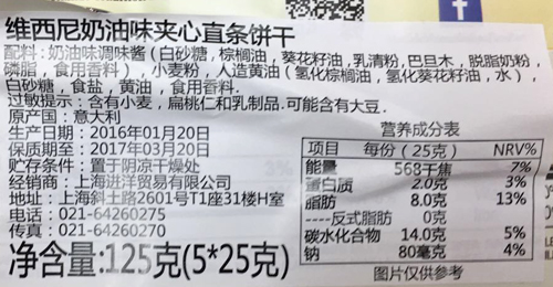 有卫检:维西尼奶油味夹心直条饼干125g(5包x25g)