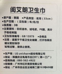 有卫检:贵爱娘夜用卫生巾12片(33cm)棉