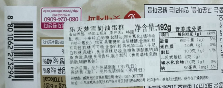 Z有卫检:乐天梦雪奶油派192g