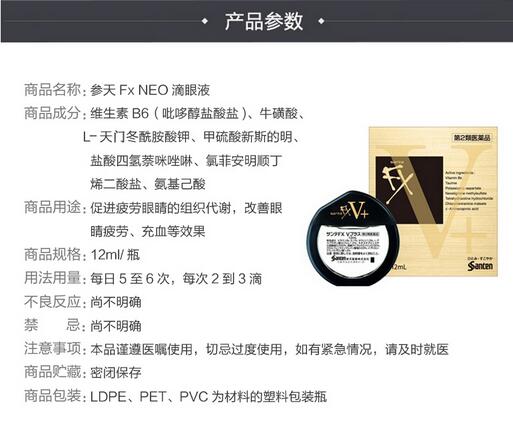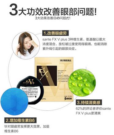 m日本参天Sante FX V+维他命滋养眼药水12ml(解眼疲劳充血)金色