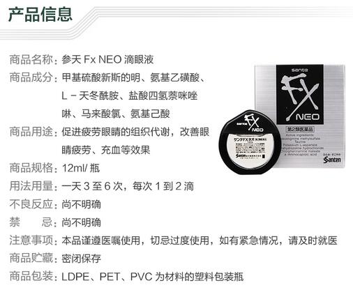 m日本参天FX NEO眼药水清凉型修护角膜缓解眼疲劳12ml(银色)