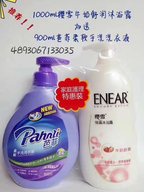 L樱雪保湿沐浴露(牛奶舒润)1000ml+芭菲手洗洗衣液900ml