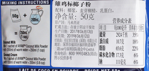 YT有卫检:雄鸡标椰子粉50g