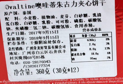 有卫检:阿华田麦芽巧克力夹心饼干360g(30gx12)