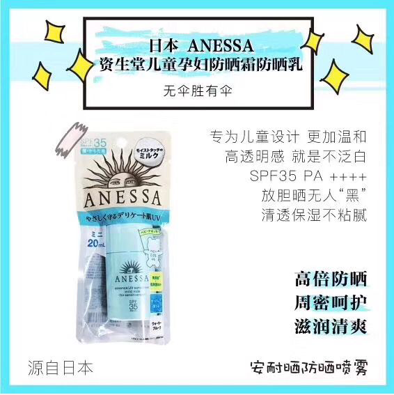 W资生堂ANESSA安耐晒儿童婴儿防晒霜20ml(SPF34)