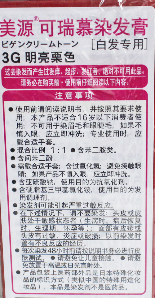 有卫检:美源可瑞慕染发膏3G明亮栗色40gx2