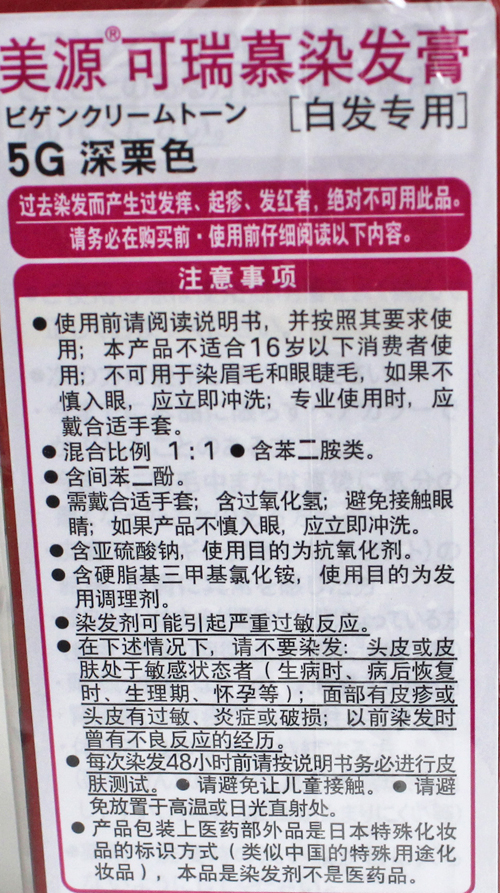 有卫检:美源可瑞慕染发膏5G深栗色40gx2