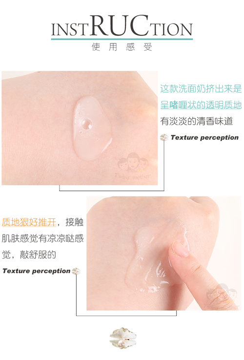 韩国JMsolution海洋珍珠洗面奶挤出来是呈现啫喱状的透明质地,有淡淡的
