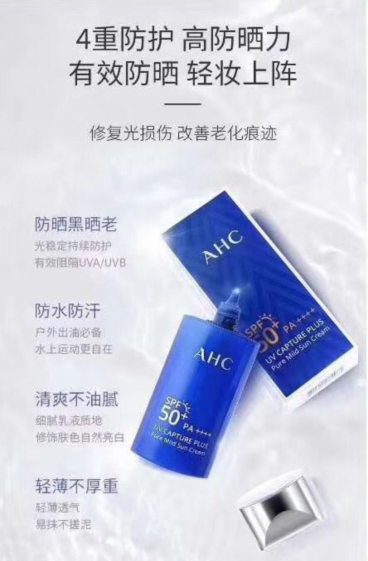 韩国AHC小蓝瓶防晒霜 长效防晒 防水防汗SPF50+晒后修复温和补水保湿防晒乳清爽不油腻50ml AHC防晒霜50ml