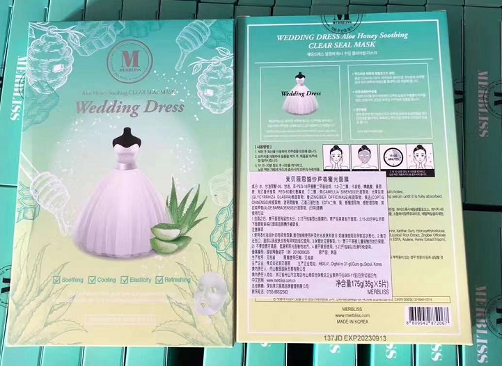 有卫检:韩国茉贝丽思婚纱芦荟蜜光面膜35克*5片