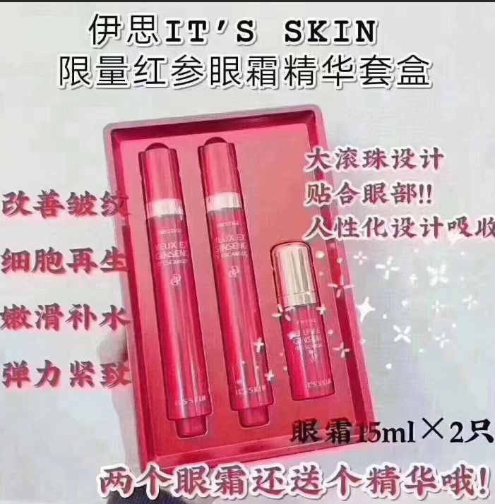 【产品介绍】:含有21%用红参饲养的蜗牛粘液过滤物和提高肌肤力量富含红参营养的双重功能性护肤,修护肌肤弹性,提高肌肤自身力。蜗牛粘液种的软骨素具有保湿锁水作用,舒缓眼周肌肤;红参有助于补充肌肤弹润,维持肌肤的健康状态;眼霜种富含能让肌肤透亮白净的烟酰胺,能有助于改善眼部细纹。