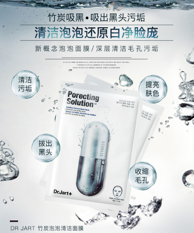 可散出:W-Dr.jart蒂佳婷银灰色药丸黑竹炭泡泡(深层清洁)面膜收毛孔5片