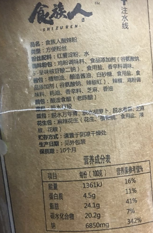 Z有卫检:食族人酸辣粉130G
