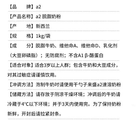 有卫检:A2脱脂成人奶粉 1kg