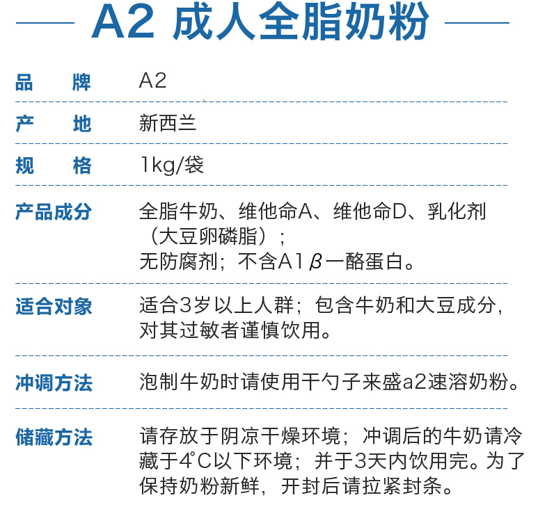 有卫检:A2全脂成人奶粉 1kg
