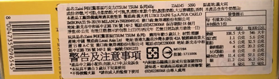 Zaini阿尼惊喜蛋巧克力(TSUM TSUM 系列)60G