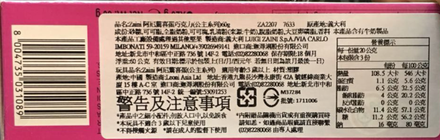 Zaini阿尼惊喜蛋巧克力(公主系列)60G