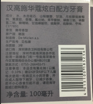 有卫检:德国汉高美白配方牙膏100G(银)