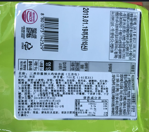 LC有卫检:三养炸酱辣火鸡味炒面(5*140G)