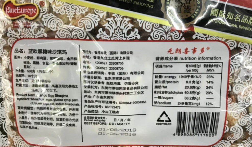 有卫检:蓝欧黑糖味沙琪玛688G