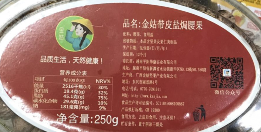 JY有卫检:金姑带皮盐焗腰果250G