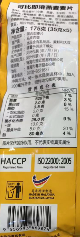 有卫检:可比即溶燕麦麦片175G(35G*5)