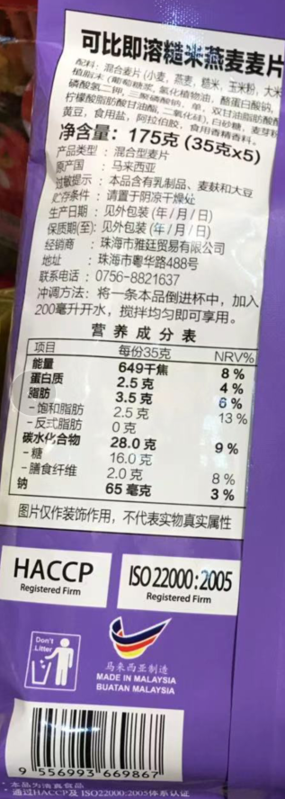 有卫检:可比即溶糙米燕麦麦片175G(35G*5)