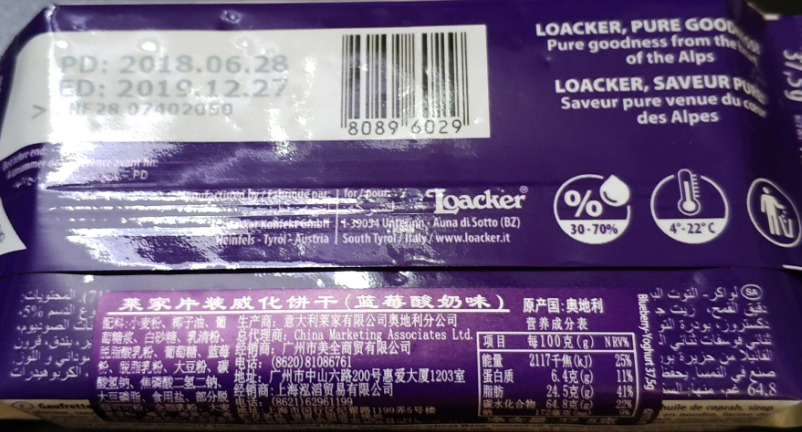 有卫检:莱家蓝莓酸奶味威化饼37.5g
