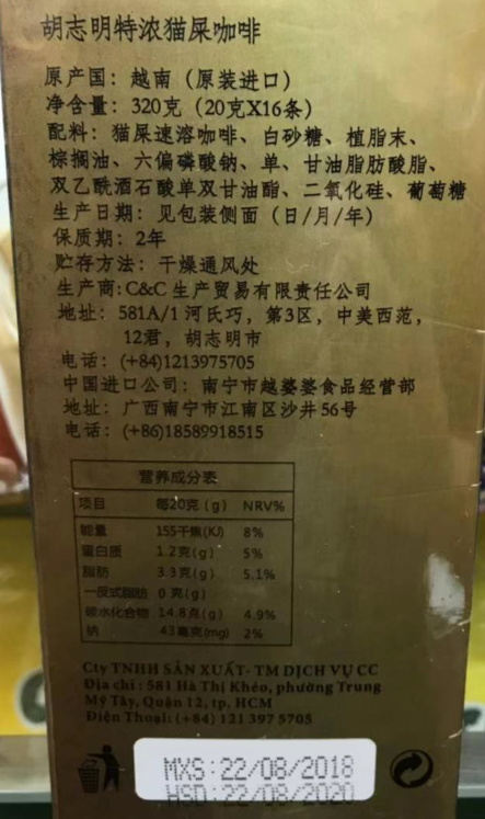 有卫检:猫皇金特浓猫屎咖啡(20G*16条)
