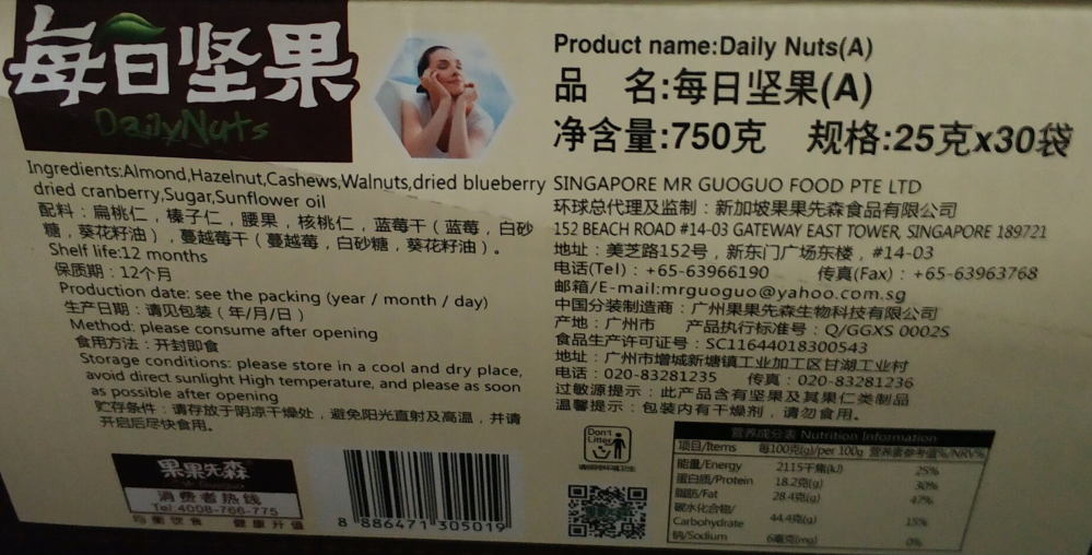 有卫检:果果先森每日坚果(A)(25G*30)国内产