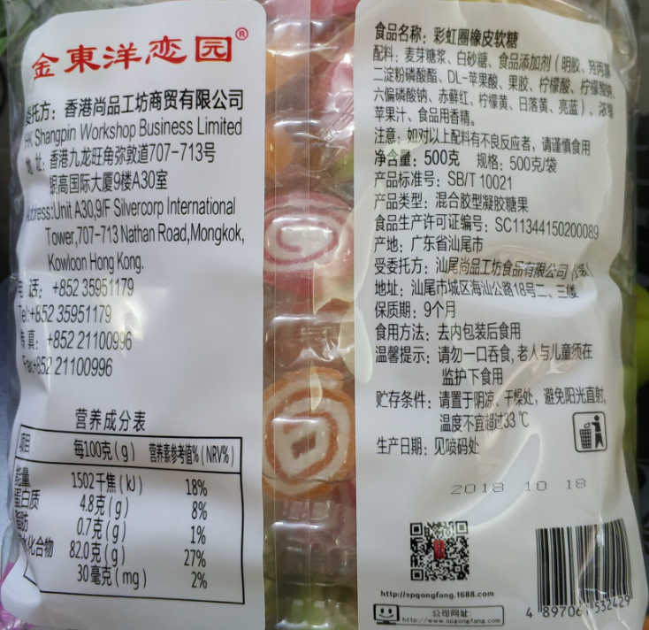 有卫检:金东洋恋园彩虹圈橡皮糖500G