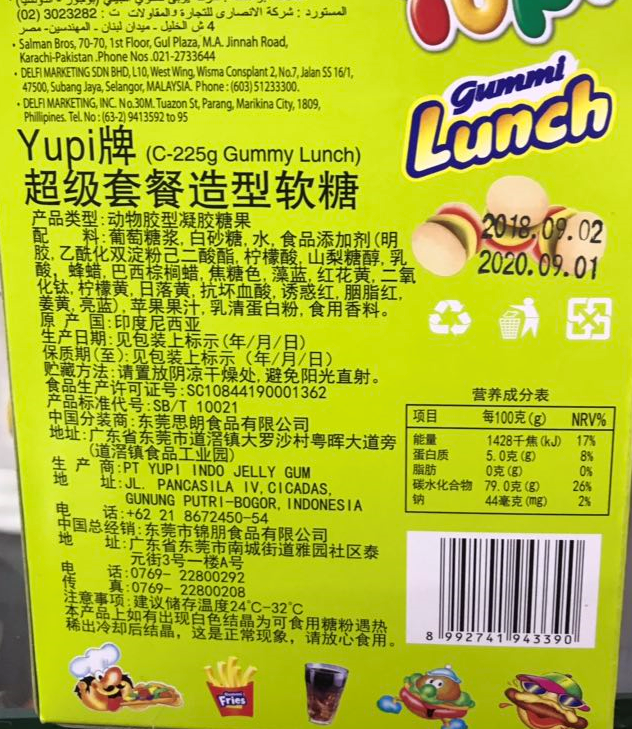 有卫检:优皮YUPI超级套餐造型软糖225G