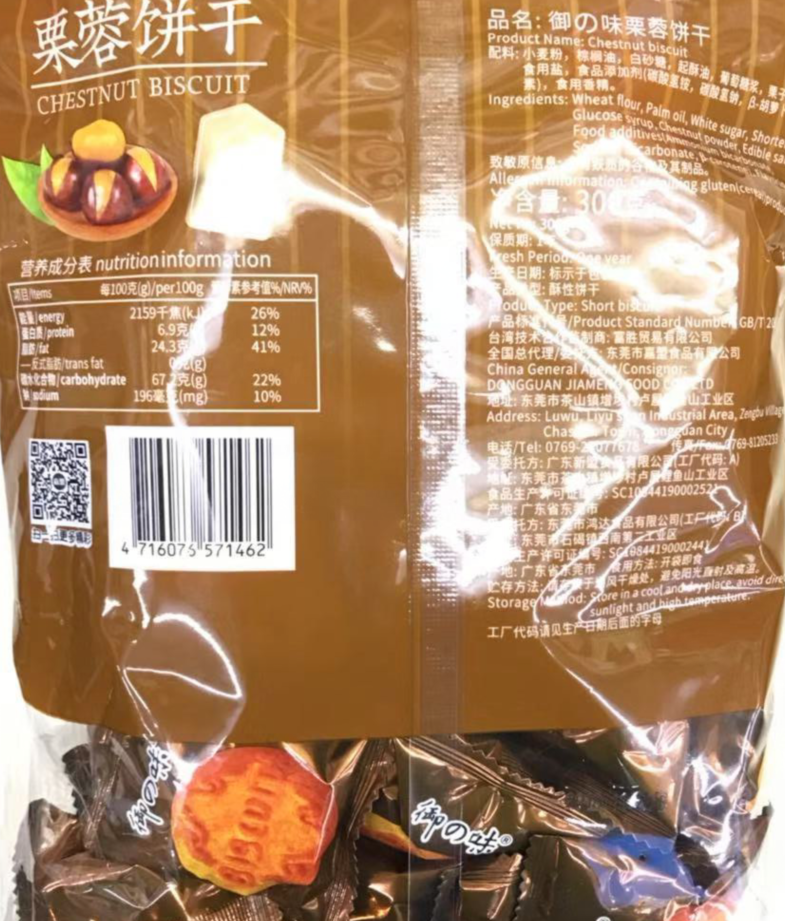 S有卫检:御之味栗蓉饼干300G