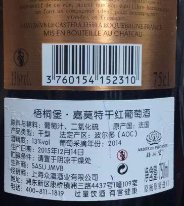梧桐堡.嘉莫特干红葡萄酒750ML