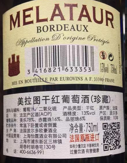 美拉图干红葡萄酒(珍藏)750ML