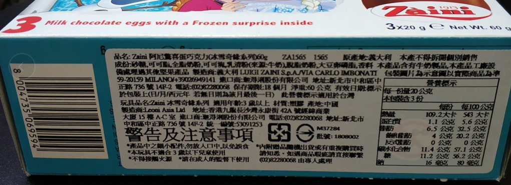 Zaini阿尼惊喜蛋巧克力(冰雪奇缘系列)60G