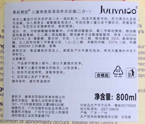 有卫检:茱莉雅图洗发沐浴二合一(燕麦/黄色)800G