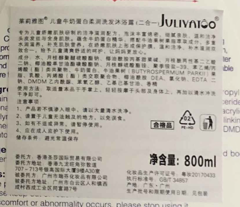有卫检:茱莉雅图洗发沐浴二合一(牛奶/白色)800G