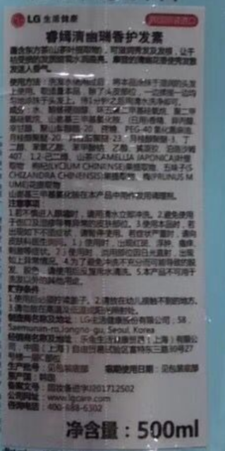 韩国LG睿嫣清幽瑞香护发素500G(蓝色)