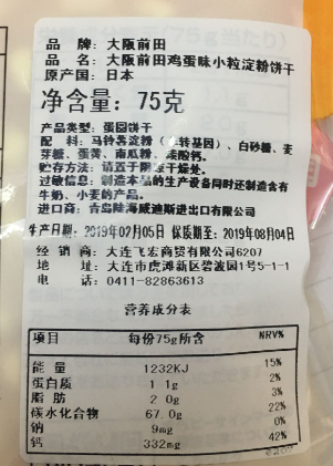 有卫检:Z-日本大阪前田小馒头75G(卵黄味)
