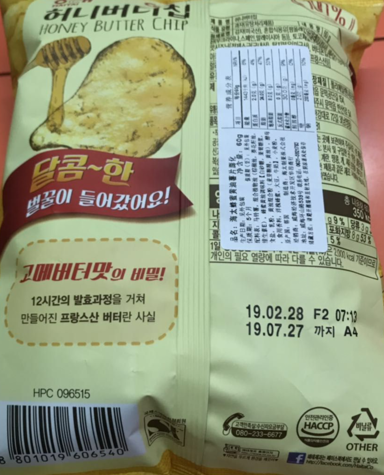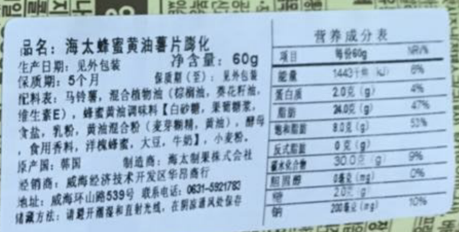 Z有卫检:海太蜂蜜黄油薯片60G