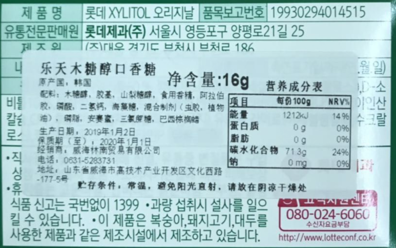 ZY有卫检:乐天木糖醇口香糖16G